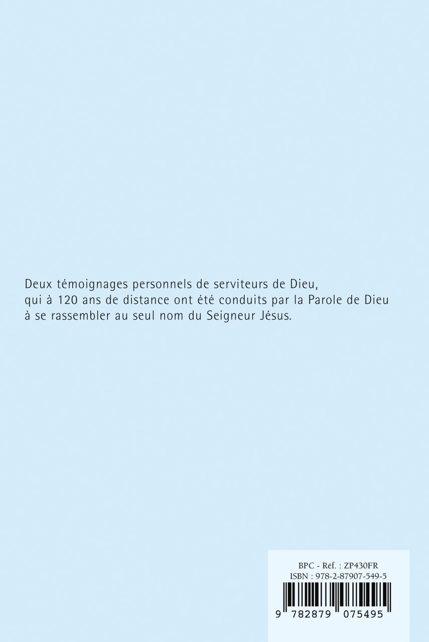 Le pas que j'ai franchi Frees Mark A. / Dennett Edward Deux témoignages personnels de serviteurs de Dieu qui, à cent vingt ans de distance, ont été conduits par la parole de Dieu à se rassembler au seul nom du Seigneur Jésus. Feuilleter l'extrait CHF 7.00 Ajouter détaillé 96 pages 12 x 18 cm Éditeur : BPC Réf. FP430 ISBN : 2879070422